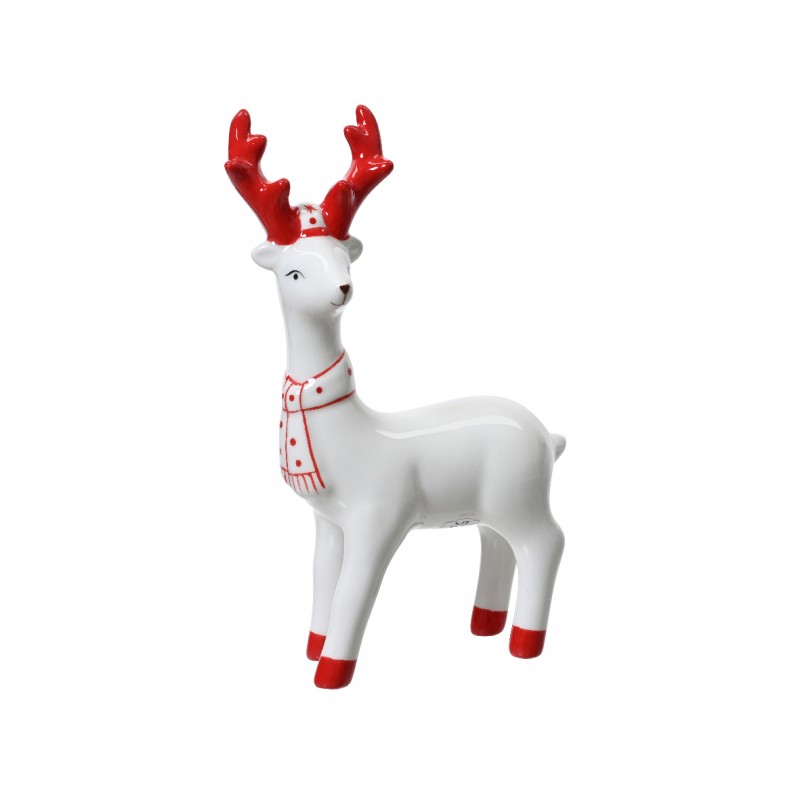Cerf Rouge/Blanc H18.5 En Céramique-Vendu À La Pièce-DECORIS