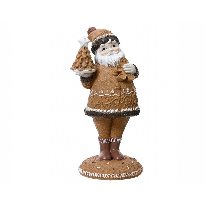 Père Noël Avec Gateau Brun En Polyrésine 13.5X11.5X25 - Vendu À La Pièce-DECORIS