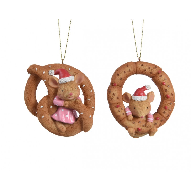 Biscuit+Souris À Suspendre Marron H7 En Polyrésine-Vendu À La Pièce-DECORIS