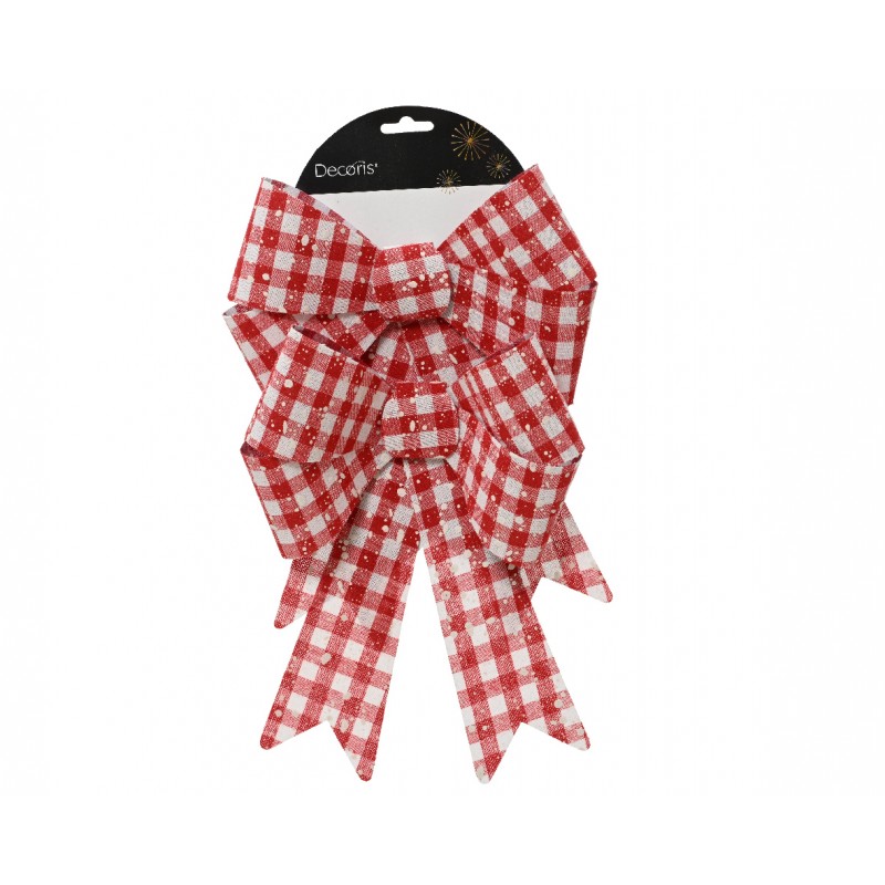 Noeud Carreaux X2 À Suspendre Blanc/Rouge H29 En Polyester-Vendu À La Pièce-DECORIS