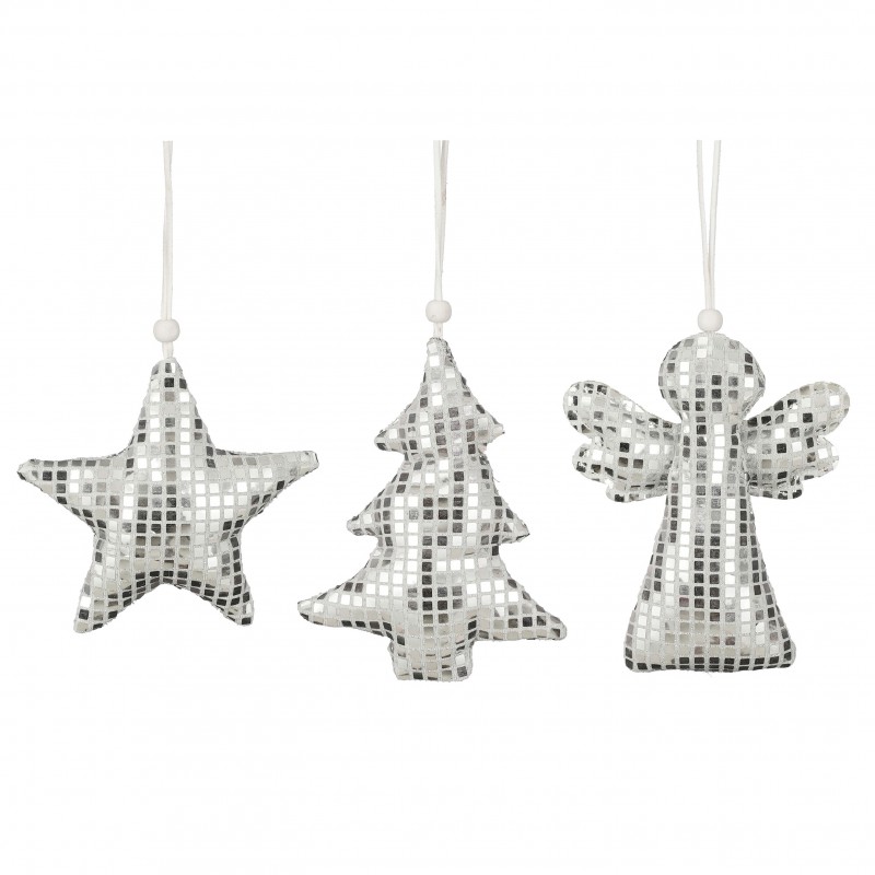 Ornement ange arbre etoile argent 3 assorti - l11,5xb2xh14cm