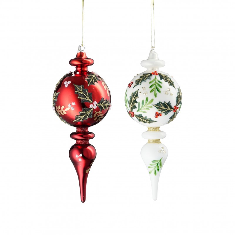 Ornement finial verre rouge vert 2 assorti - h20xd8cm