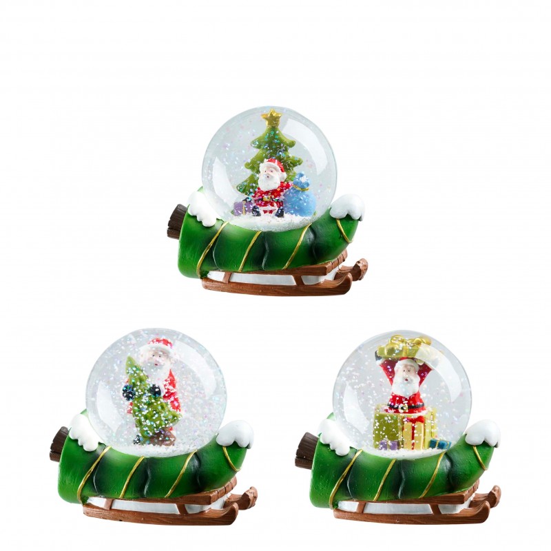 Decoration boule a eau pere noel vert 3 assorti - l10xb6,5xh8,5cm
