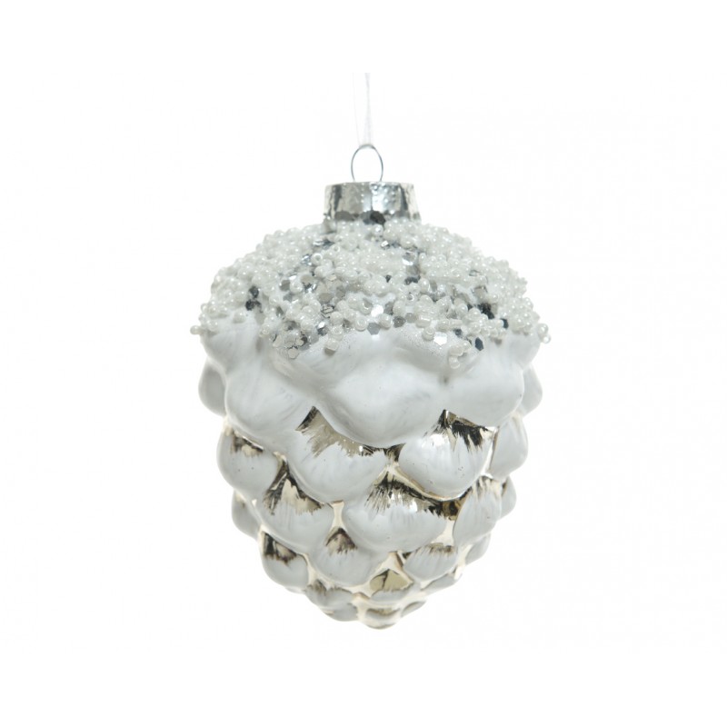 Pomme De Pin Perle À Suspendre Verre Blanc H7.5