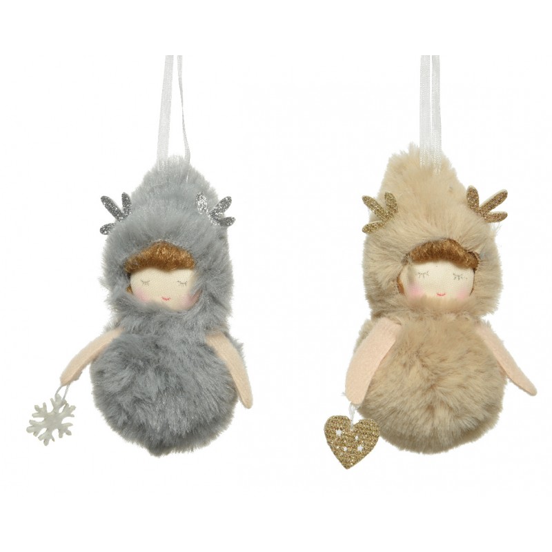 Fille fausse fourrure coeur et flocon feutre 2col ass