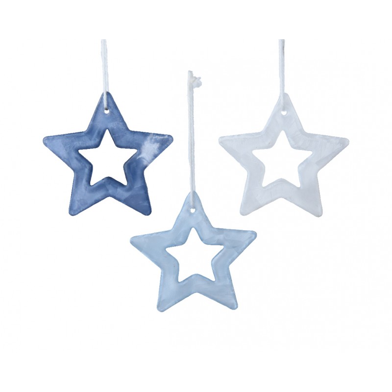 Suspension Étoile Ajourée Bleu En Verre H8.40 - Vendu À La Pièce-DECORIS
