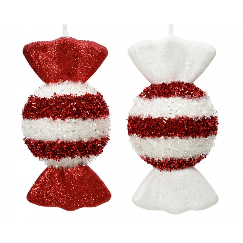 Suspension Bonbon Rouge/Blanc En Mousse H15 - Vendu À La Pièce-DECORIS