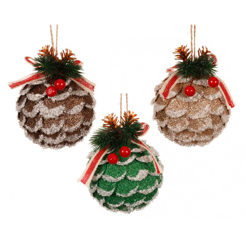 Pomme De Pin Givrée À Suspendre Vert/Naturel En Mousse Ø8 - Vendu À La Pièce-DECORIS