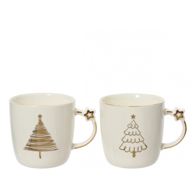 Mug Motif Étoile Blanc/Or H9 En Porcelaine-Vendu À La Pièce-KITCHENGOODS&MORE