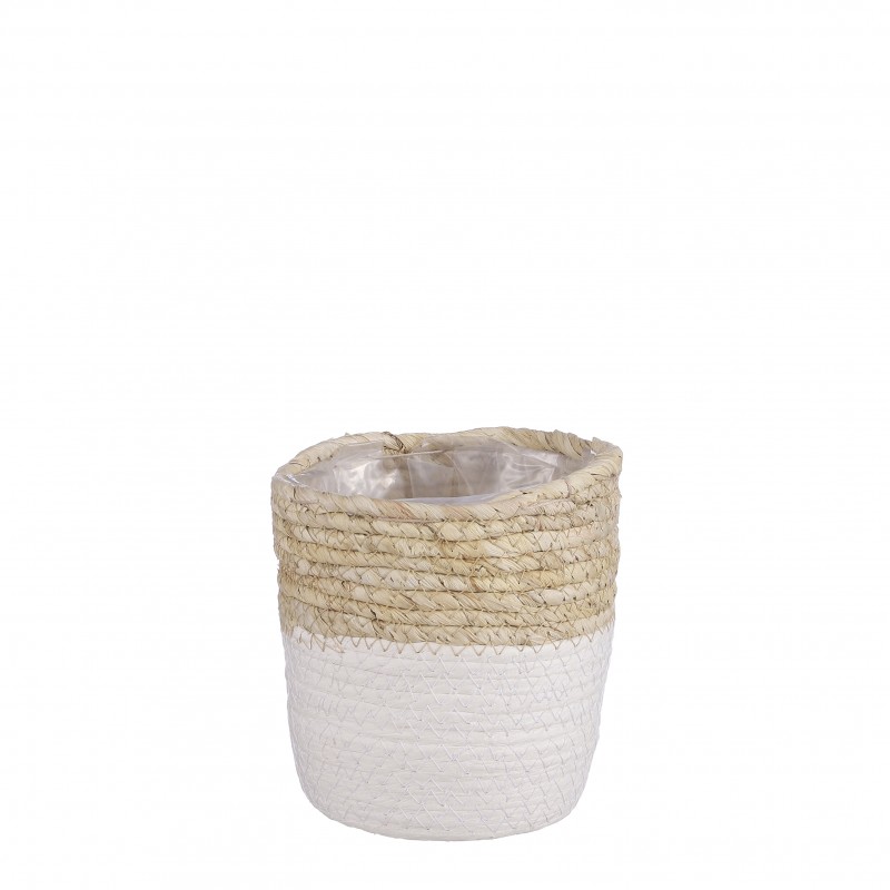 Le panier Rachel de la collection Mica Decorations est fonctionnel et donne une touche naturelle à votre intérieur. Le panier est fabriqué à la main à partir de feuilles de maïs et est très respectueux de l'environnement. Cette base naturelle est clairement visible dans la partie supérieure du panier. tandis que la partie inférieure présente une couleur blanche et fraîche. Grâce à sa doublure en plastique. le panier convient parfaitement à une jolie plante. mais vous pouvez également y ranger quelques objets. Les paniers Rachel sont disponibles en différentes couleurs et tailles.