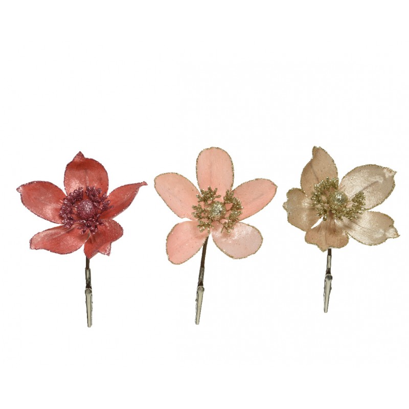 Fleur Tissu Clip Polyester Rouge Blanc Ø12-Vendu À La Pièce