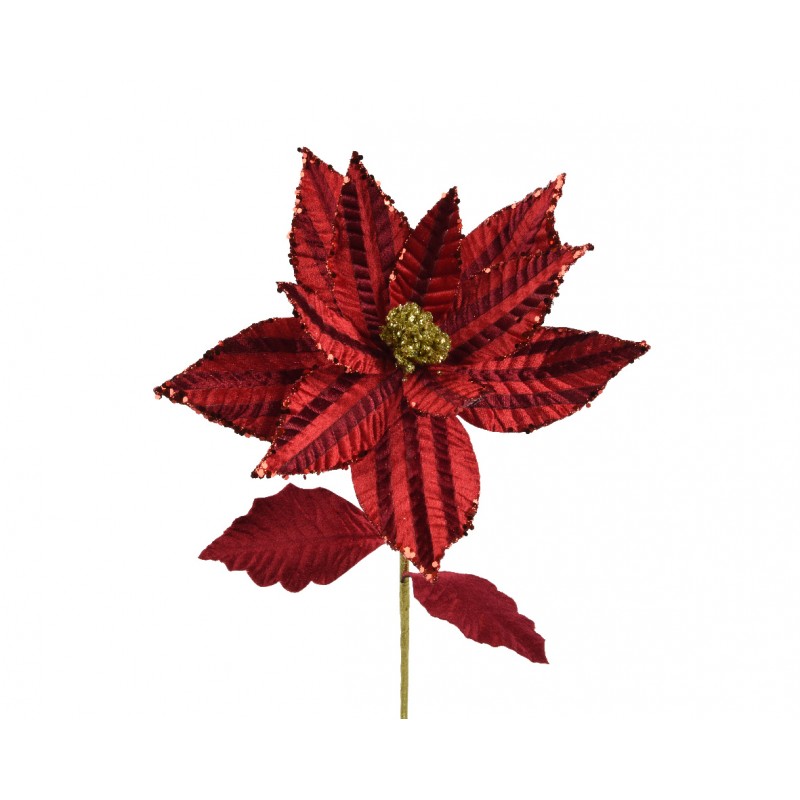 Tige De Poinsettia Rouge En Polyester/Velours H60 - Vendu À La Pièce-EVERLANDS